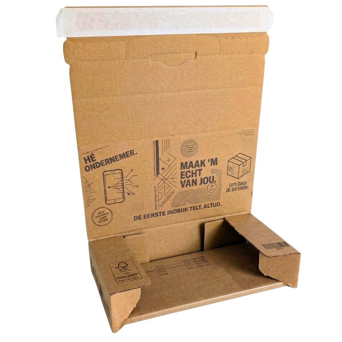 - Bedrukking op de binnenzijde (Onze tip!): De perfecte keuze voor discrete verzending. Aan de buitenkant is niet zichtbaar dat er een waardevolle smartphone in de doos zit (anti-diefstal), maar bij het openen wordt de klant direct verrast door jouw branding.