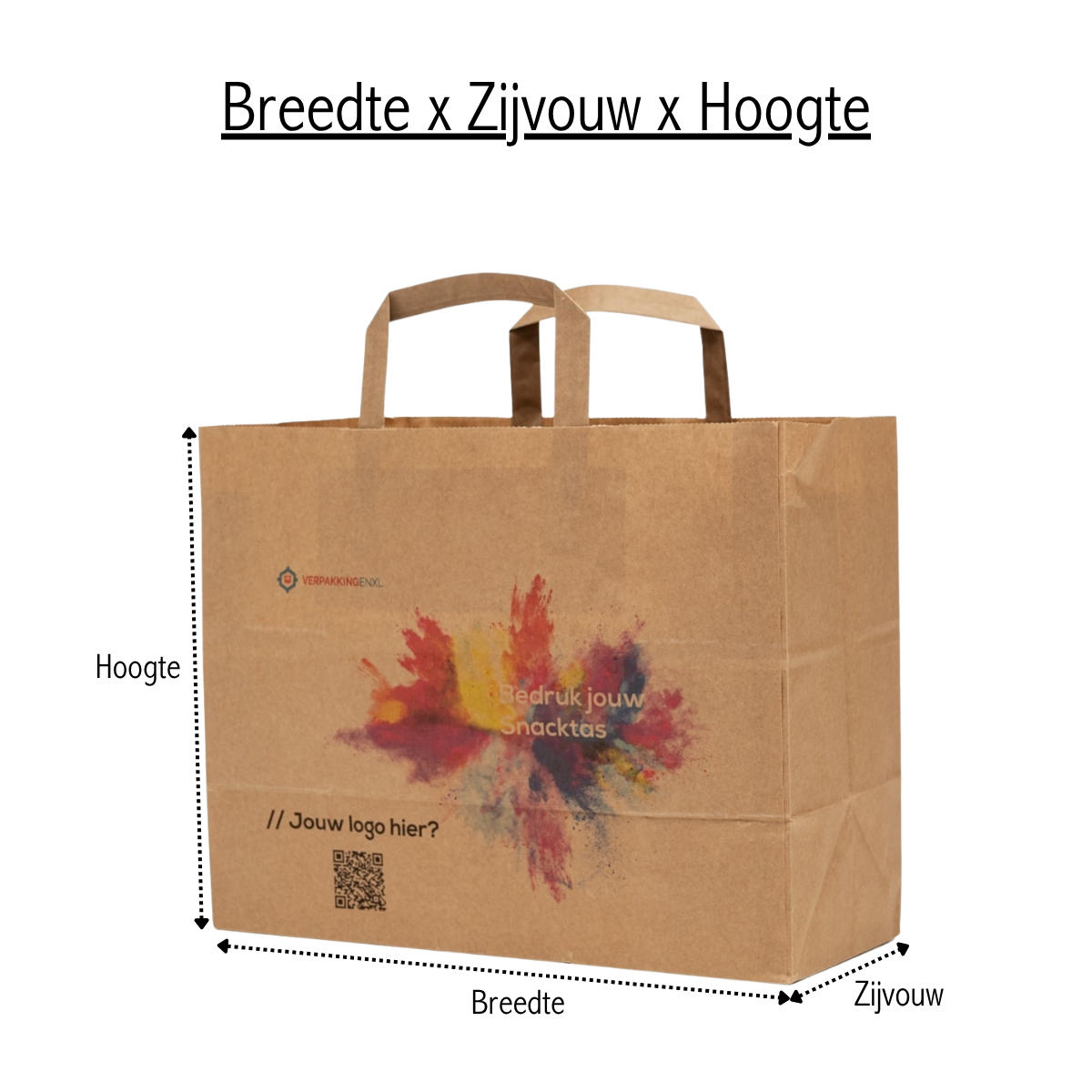 Je kiest zelf of je de tassen in wit of bruin kraftpapier wilt laten bedrukken. Ook de handgreep is naar wens aan te passen: ga voor een platte handgreep of een luxe gedraaid koord. Beide varianten zijn gemaakt van stevig papier en geschikt voor zware of volumineuze inhoud.