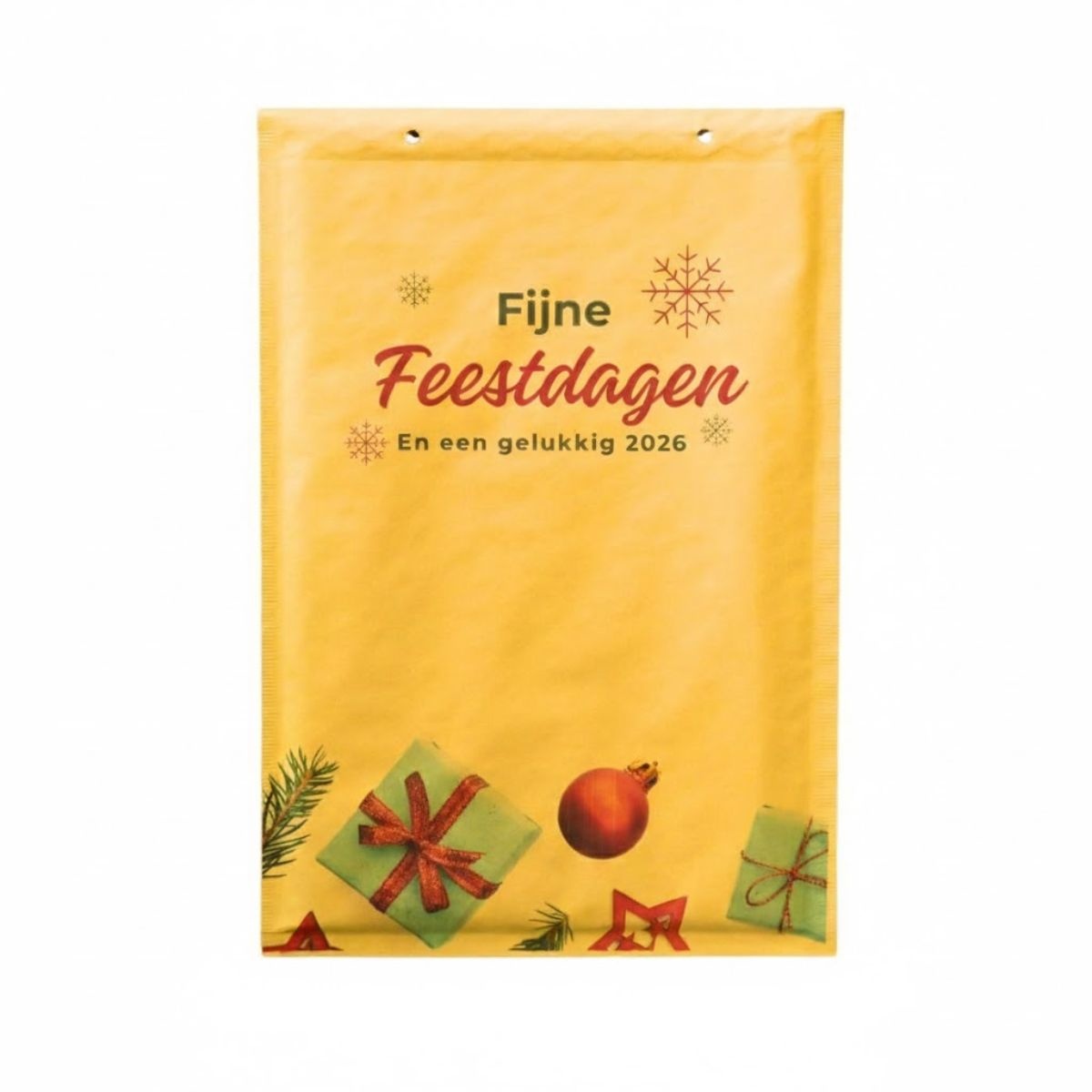 Wil jij jouw kerstgeschenk sfeervol verpakken en moet deze ook nog eens goed beschermd worden? Dan is de bubbelenvelop met kerst print de ideale verpakking. Zelfs wanneer jouw product niet verstuurd hoeft te worden, is dit een mooie manier om een kerstgeschenk te verpakken voor onder de kerstboom. Het ontwerp is speciaal aangepast naar het nieuwe jaar (2026) zodat deze ook nog extra relevant is.