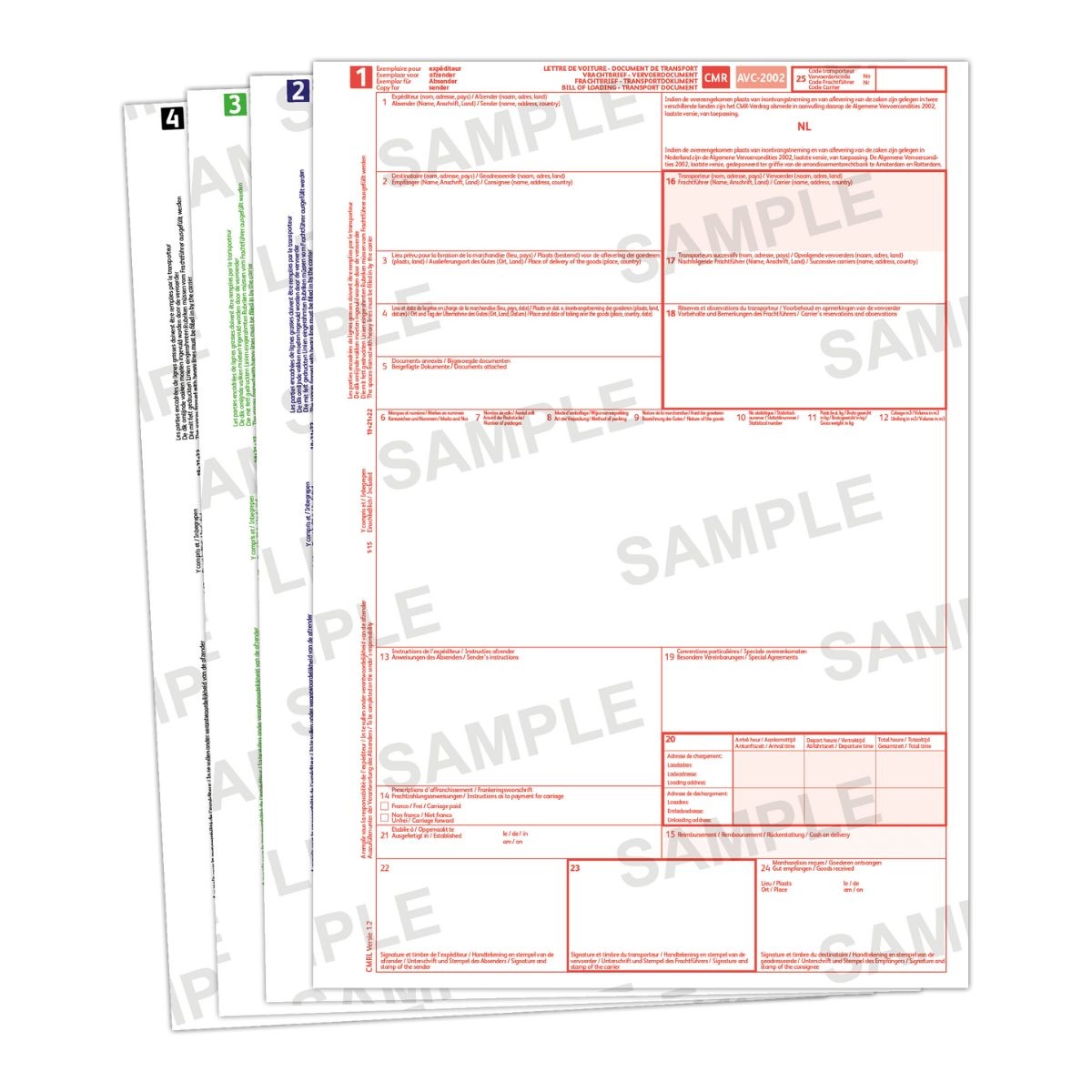Elke set bestaat uit vier losse A4-vellen die bedoeld zijn om in één printopdracht direct na elkaar te printen. De volgorde is genummerd van 1 t/m 4: het eerste vel is voor de afzender, het tweede voor de vervoerder, het derde voor de ontvanger en het vierde voor de administratie. Deze volgorde is afgestemd op de standaard CMR-indeling en maakt het verwerken eenvoudig. Gewoon insteken in de lade, afdrukken en je hebt direct een complete set klaar voor gebruik.