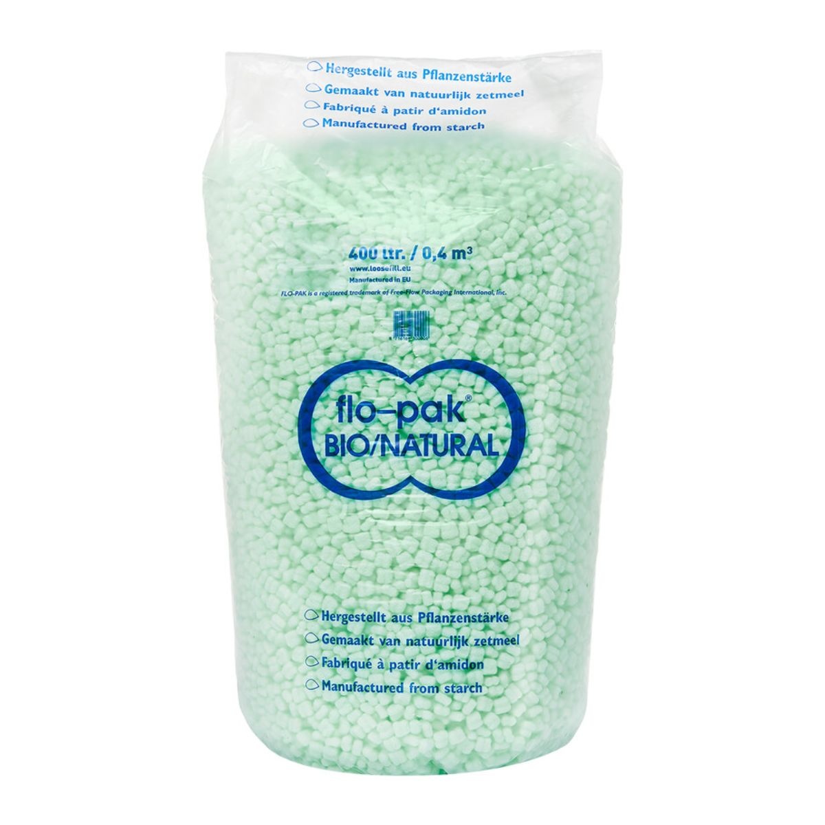 Deze opvulchips van het merk Flo-Pak® zijn biologisch afbreekbaar en dus niet belastend voor het milieu. Elke zak bevat 400 liter aan opvulchips. Door de unieke vorm van de chip blijven de te vervoeren producten perfect op hun plek liggen.