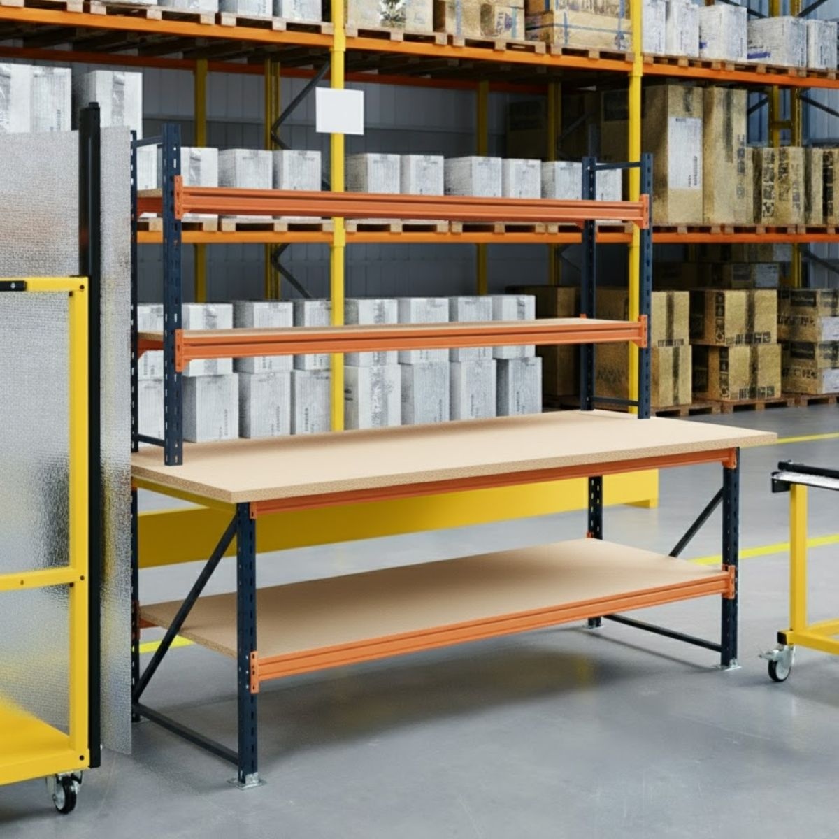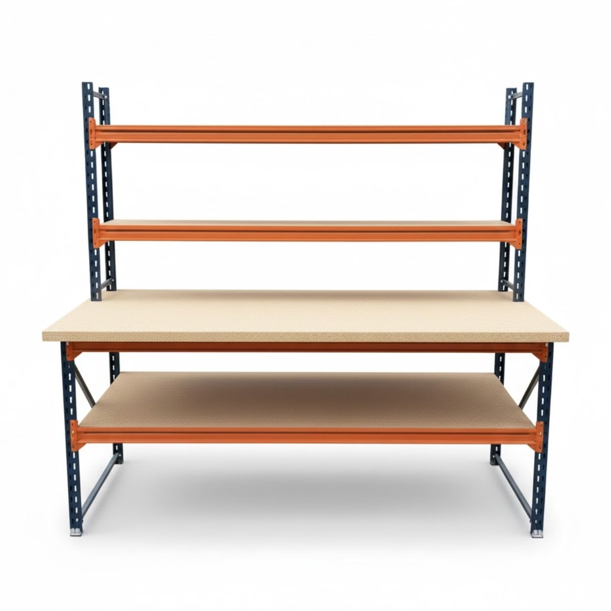 Het werkblad is gemaakt van 38 mm dik C-dur hout. Dit materiaal is sterk, slijtvast en bestand tegen spatwater. Het voorkomt afbrokkelen of kromtrekken, zelfs bij langdurig gebruik. Een solide werkoppervlak dat perfect is voor dagelijks werk in het magazijn.