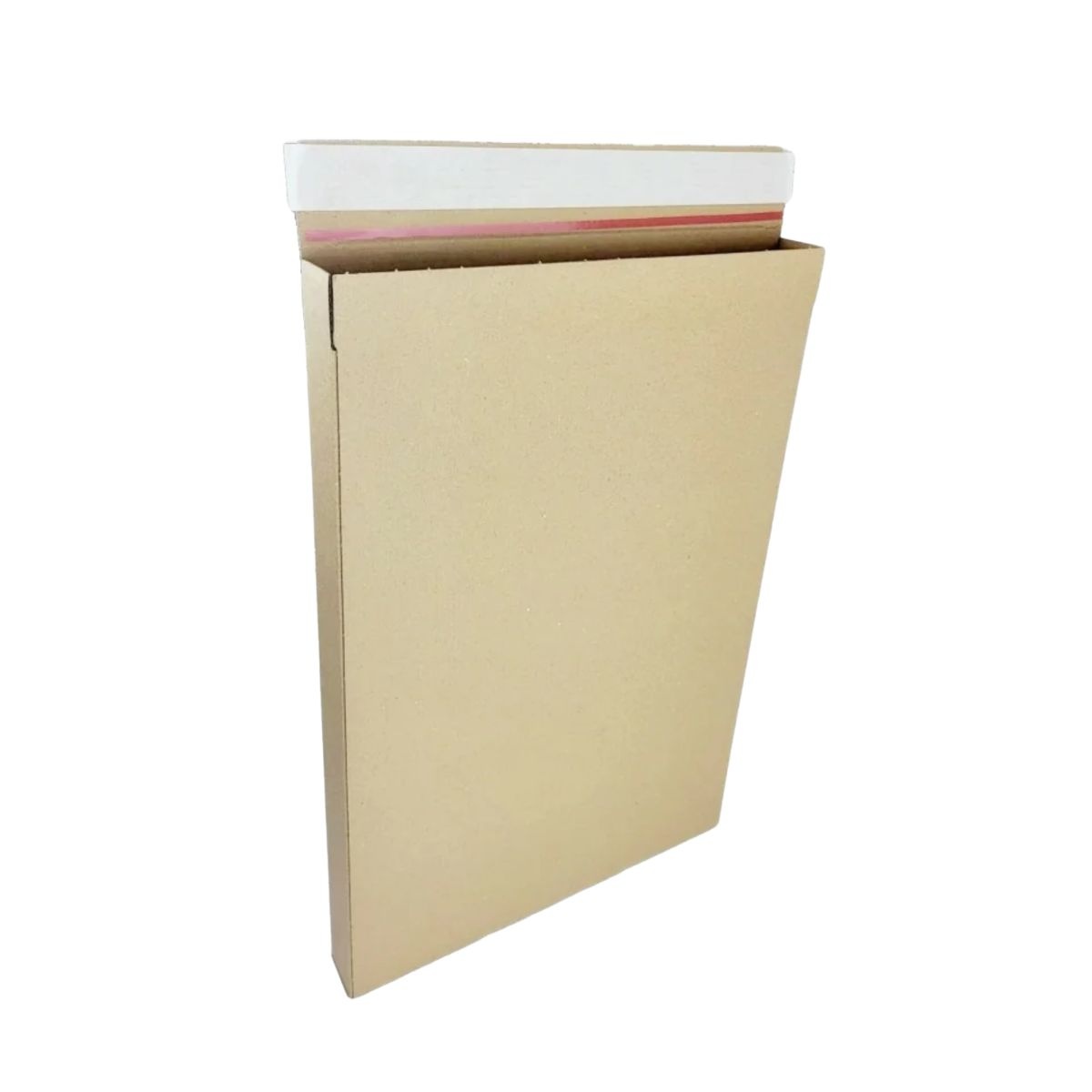 Deze platte verzenddoos is ontworpen voor het versturen van dunne producten die toch stevig verpakt moeten worden. Met de zelfklevende plakstrip sluit je de doos direct zonder tape. De tear-off strip aan de korte zijde zorgt ervoor dat de ontvanger de doos eenvoudig opent zonder de inhoud te beschadigen.