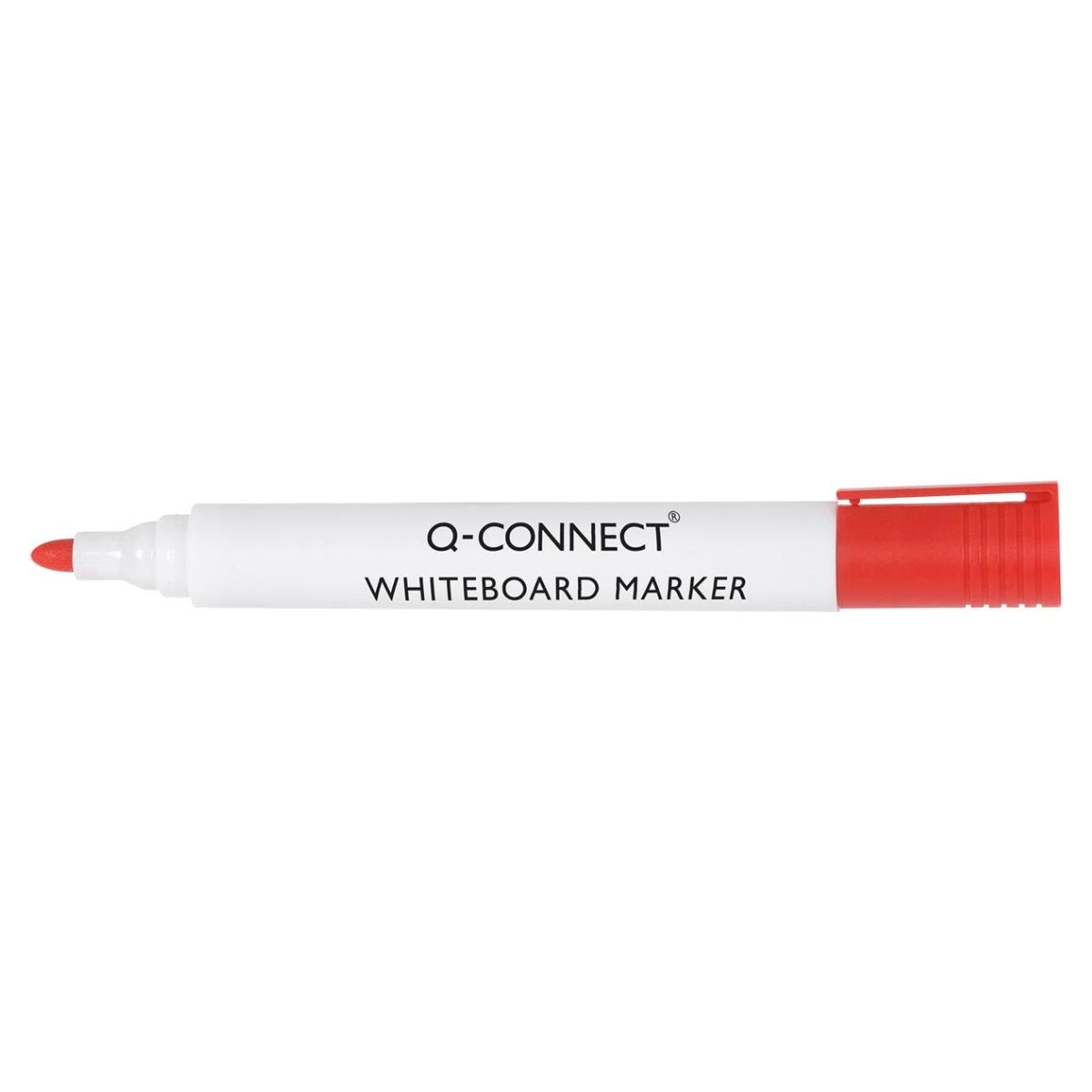 Deze whiteboardmarker heeft een ronde punt met een schrijfbreedte van: 1 - 3 mm. De inkt is op basis van alcohol en daardoor ook droog goed uitwisbaar. Aan de kleur van de dop van Q-CONNECT stiften kan je zien welke kleur deze schrijft. In dit geval de rode kleur.