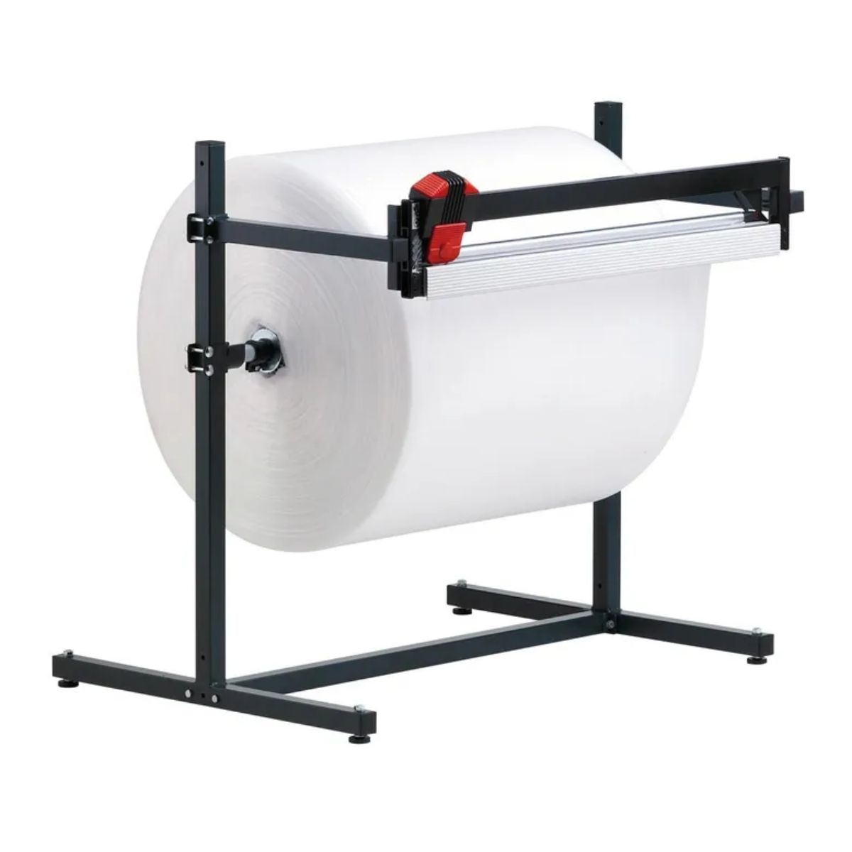 De Rocholz 26220N is een volledig vrijstaand model en wordt geleverd met een stabiel metalen onderstel. Je plaatst hem direct op de vloer – zonder extra montage. Ondanks het formaat blijft de standaard stevig en betrouwbaar, zelfs bij dagelijks gebruik met zware of brede rollen. Een praktische oplossing voor productieomgevingen waar met groot verpakkingsmateriaal wordt gewerkt.