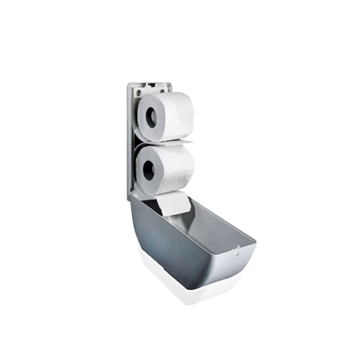 Deze dubbele toiletrol dispenser is bedoeld voor locaties waar je minder vaak wilt bijvullen. De dispenser biedt ruimte voor twee toiletrollen die verticaal worden geplaatst. Ideaal voor kantoren, sanitaire ruimtes en andere drukbezochte omgevingen.